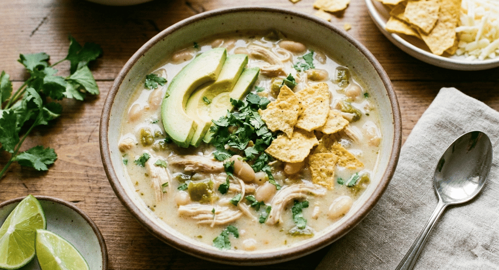 Creamy, cozy, and packed with flavor—this Easy White Chicken Chili is the kind of soup that makes your whole kitchen smell amazing. Tender shredded chicken, white beans, sweet corn, and green chiles simmer together in a silky broth, then get finished with a swirl of sour cream and a bright squeeze of lime. It’s hearty without being heavy, comes together fast, and tastes even better the next day. Top it with avocado, cilantro, and crunchy tortilla chips for that “one more bite” moment.